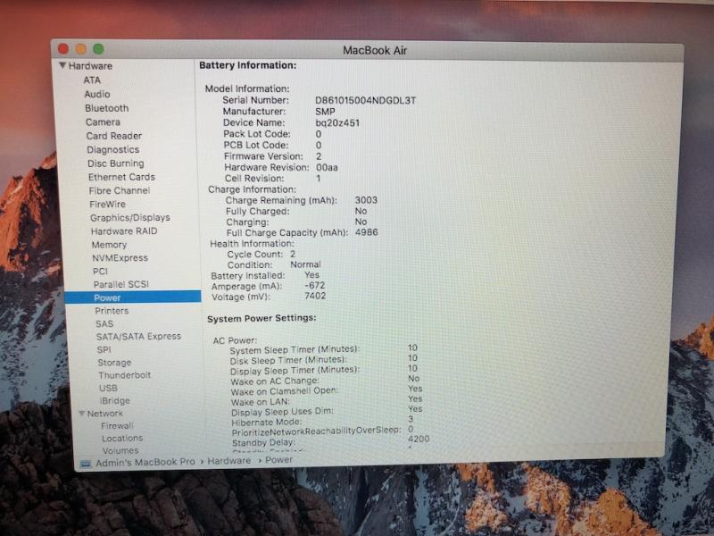 - Battery : Condition Narmal Cycle count 1 Full Charge 4416