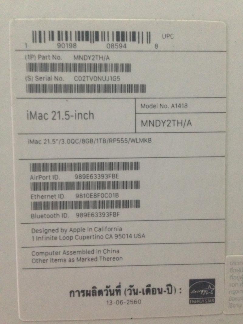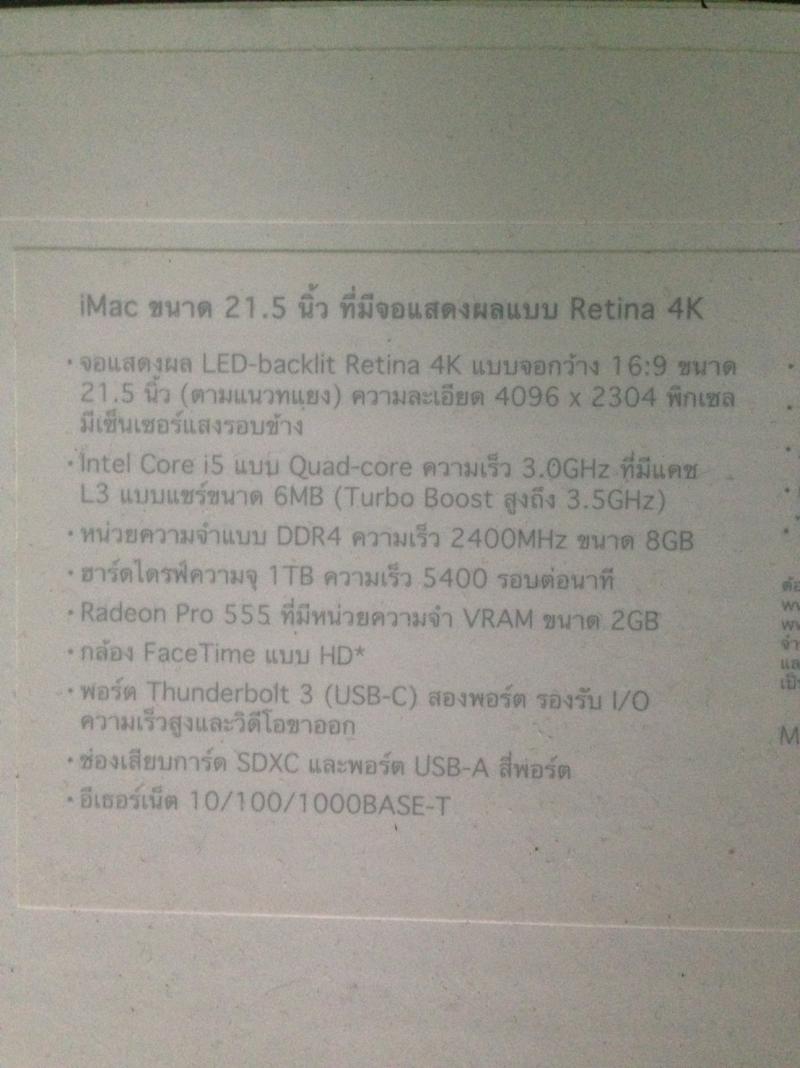ขอขาย IMAC 21.5 Retina 4K , 2017