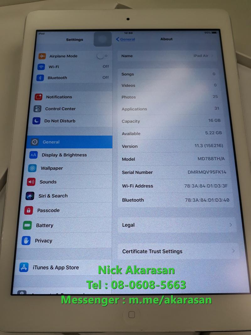 ขาย Apple iPad Air 16GB Wi-Fi Silver สภาพนางฟ้า 100%