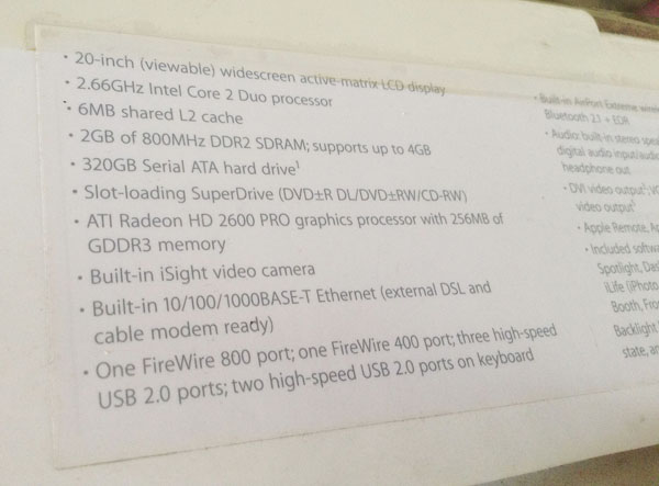 ขาย imac 20\\\\\\\" iMac (Early 2008)