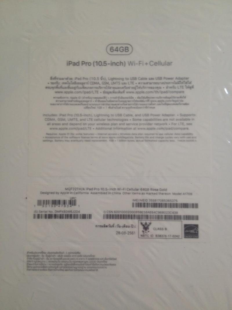 ขาย iPad pro 10.5 wi fi + cell ของใหม่ 100% ยังไม่แกะกล่อง