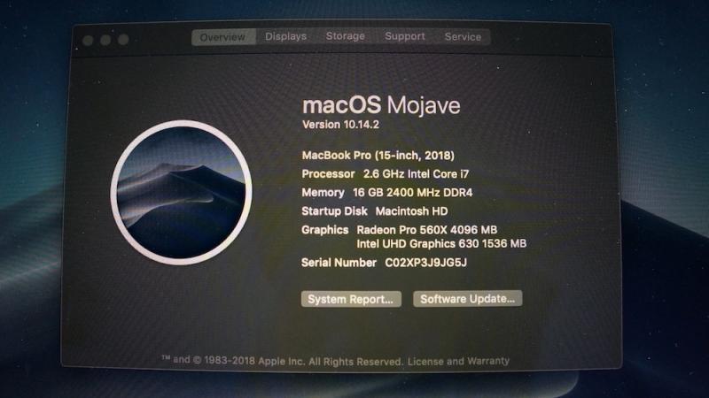 โปรเซสเซอร์ Intel Core i7 รุ่นที่ 8 แบบ 6-core ความเร็ว 2.6GHz