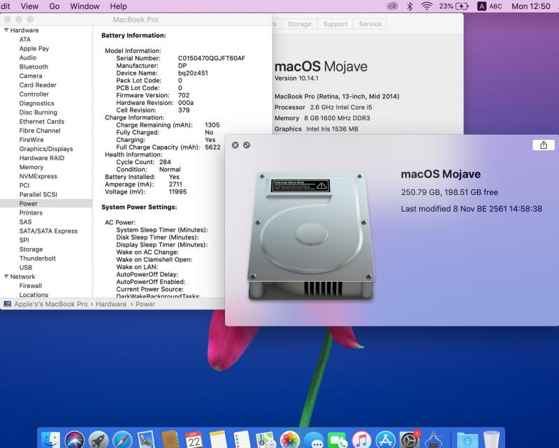 ขาย MacBook Pro 13-inch, Mid 2014 / Core i5 2.6GHz, RAM 8GB, SSD 256GB, Iris Graphics 5100 (1.5GB) / สภาพนางฟ้า / ครบกล่อง / ขาย 28,900 บาท