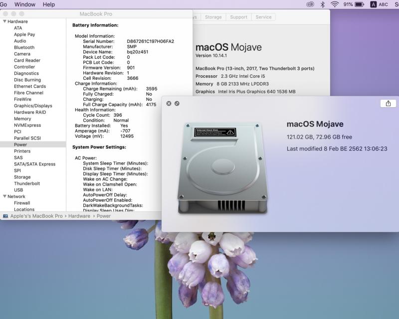 - Batterry : Normal / Cycle 396 / Full Charge 4175 (mAh)