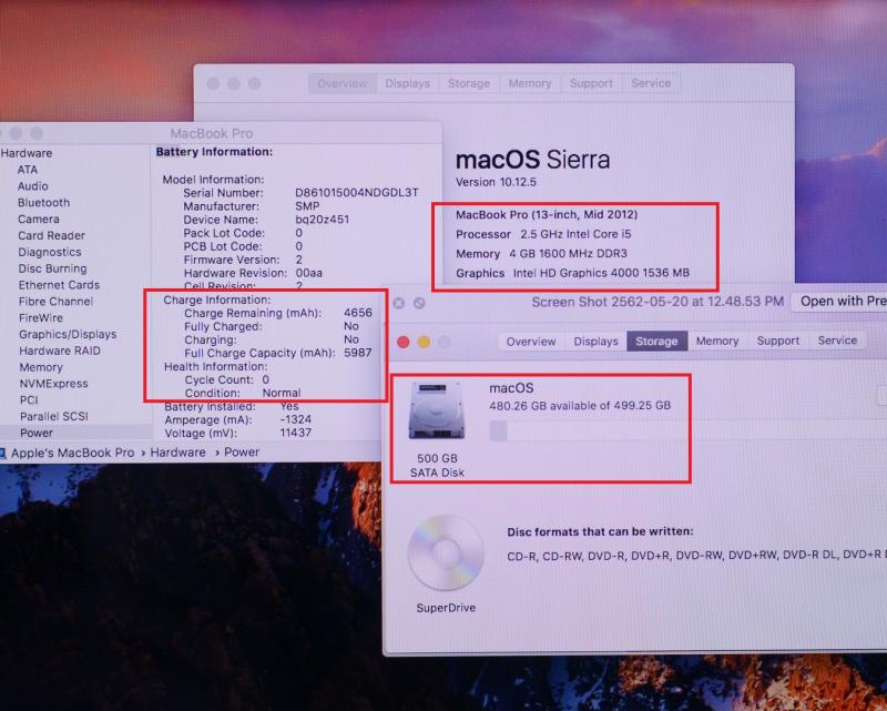 ขาย MacBook Pro 13-inch Mid 2012 / Core i5 2.5GHz RAM 4GB HDD 500GB / สภาพดีมาก+เครื่องสวย แบตใหม่ Cycle 1 รอบ ครบยกกล่อง / ขายเพียง 15,900 บาท