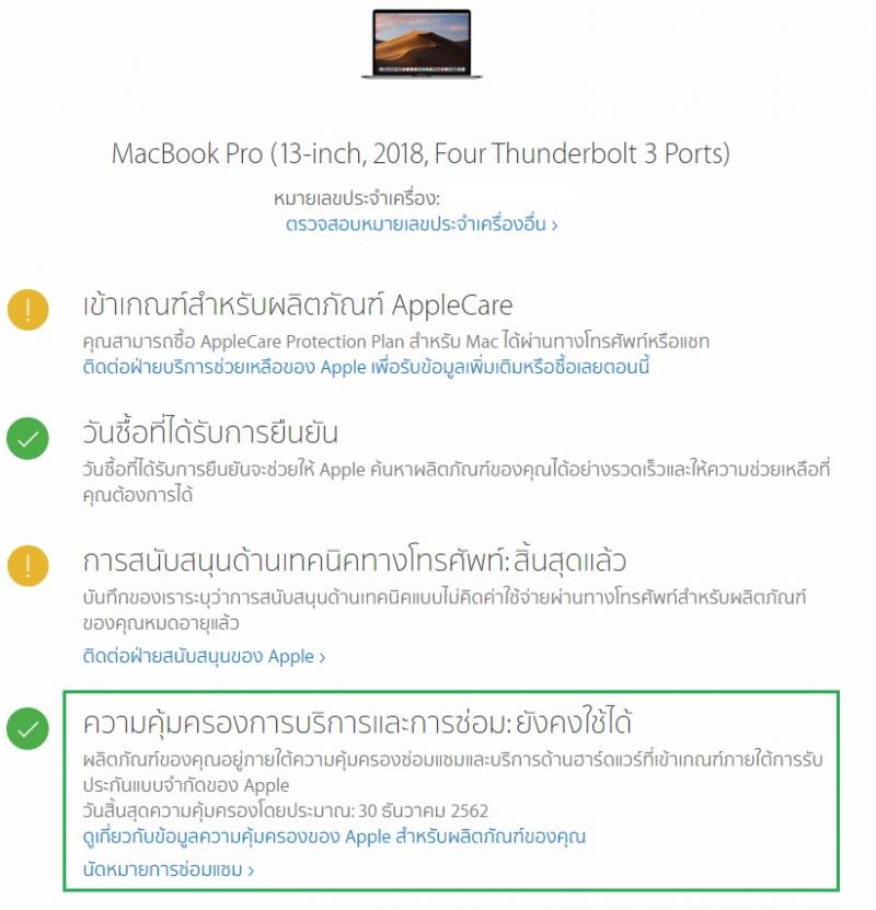 - Warranty : ประกันศูนย์ถึง 30-12-2019