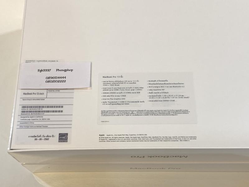 MacBook Pro Retina 13 2017 2.3Ram 8GB 128GB SSD ของใหม่ 38500 บาท