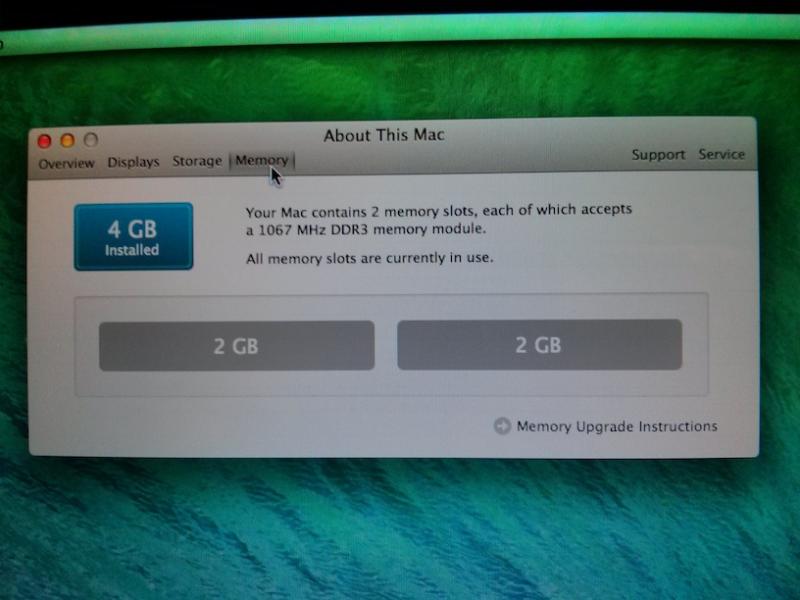 Memory: 4 GB 1,067 MHz DDR3