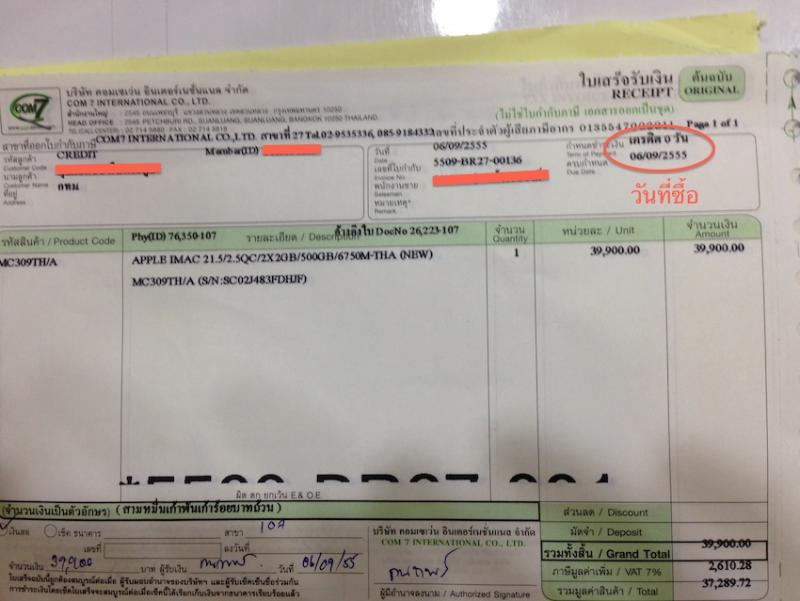 ซื้อมาเมื่อวันที่ 06/09/2555 ประกันเพิ่งหมดไปครับ ไม่เคยแกะ ไม่เคยซ่อม ครับ