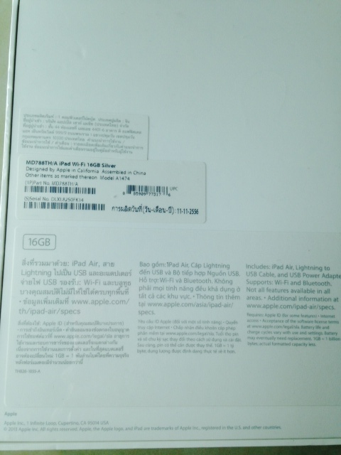 IPAD AIR สีขาว 16g wifi มือหนึ่ง ประกันเหลือประมาณครึ่งปี ขายเพียง 15,000 บาท ถูกกว่า shop apple 1,900!! ยังไม่เคยเเกะซีลเลย!