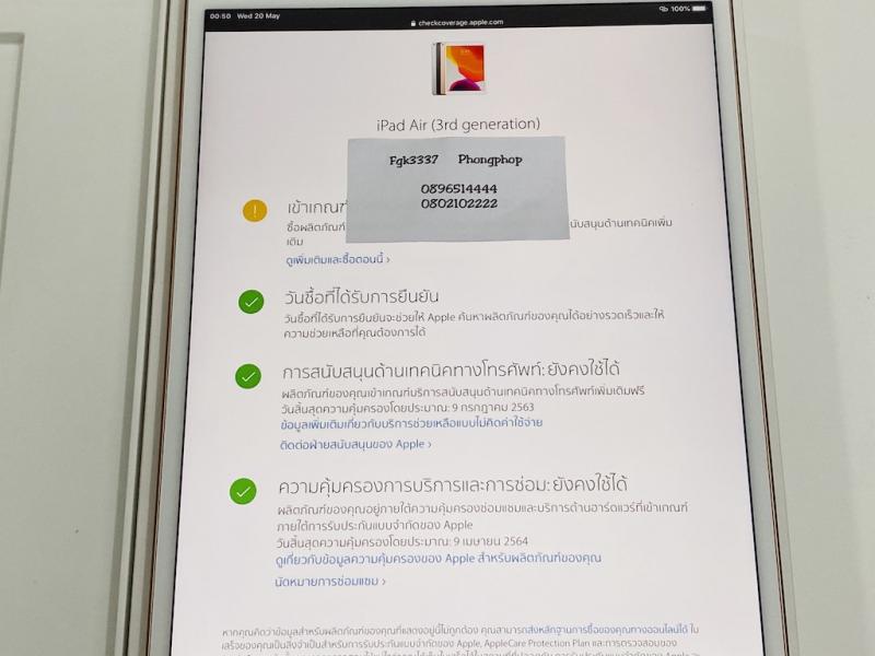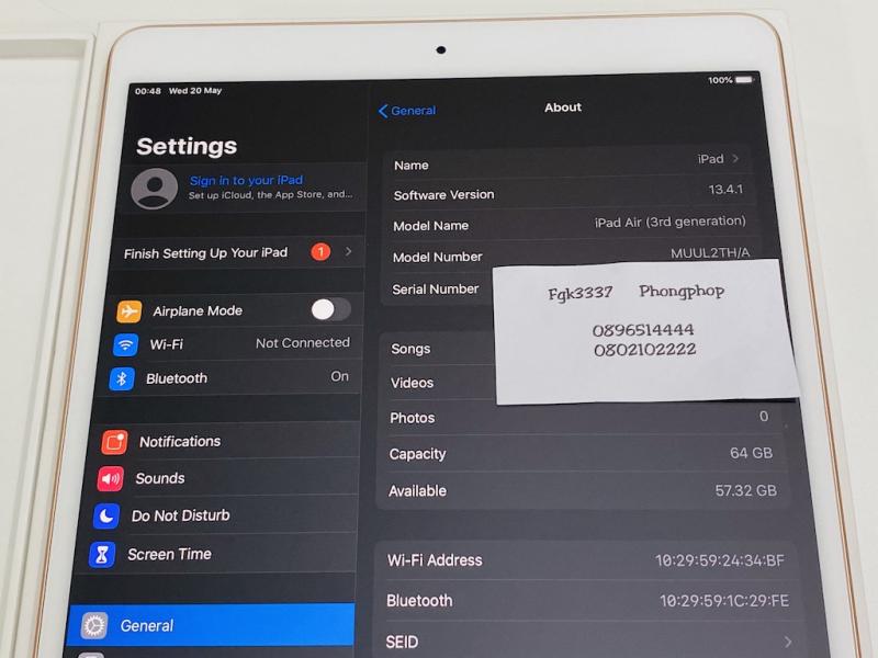 iPad Air 3 64 GB Wifi สภาพสวยมาก ศูนย์ไทย สภาพเหมือนใหม่ อายุ 1 เดือน 15900 บาท