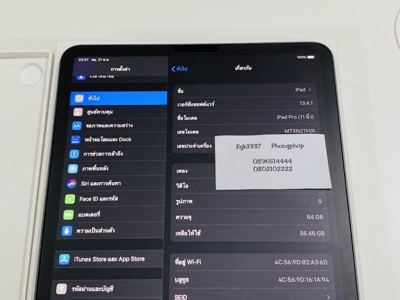 iPad Pro 11 64 GB Wifi สภาพใหม่ ศูนย์ไทย อุปกรณ์ครบ 20900 บาท