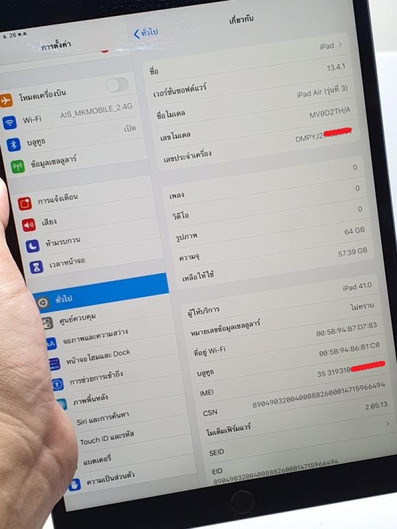 >>> Ipad Air 3 64 gb Cellular ใส่ซิมได้ สีดำ ศูนย์ไทย มีเครื่อง กับ ชุดชาร์จ สภาพงาม ประกัน 06-06-2563 ราคาเพียง 16900