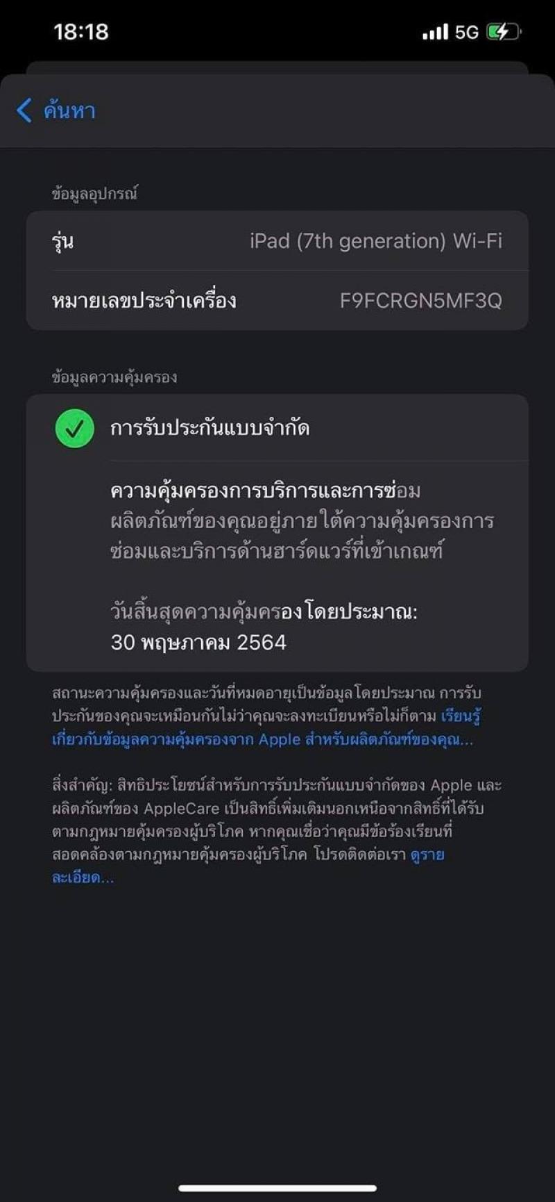 iPad Gen 7 (10.2) Wifi 128 GB สี Space Gray ศูนย์ไทย (TH) ได้รับการเปลี่ยน ตัวเครื่อง ใหม่มาเป็นเครื่องสิงคโปร์ (ZP) ทำให้ imei ไม่ตรงกล่อง ( เป็นมือสองสภาพใหม่เอี่ยม 99.99 % ) ประกันเช็คจากตัวเครื่องถึง 30/05/2021 ครบยกกล่อง เพียง 10,500 บาทครับ
