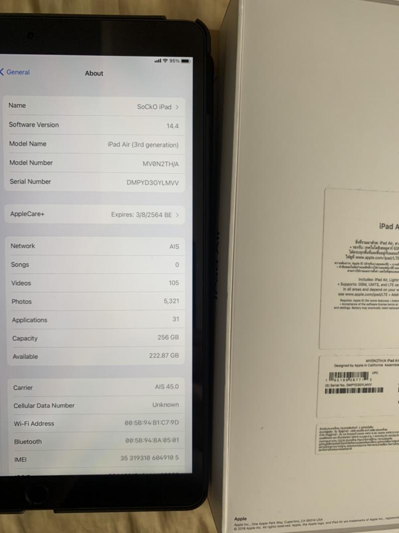 ต้องการขาย iPad Air 3 256gb wifi+cell
