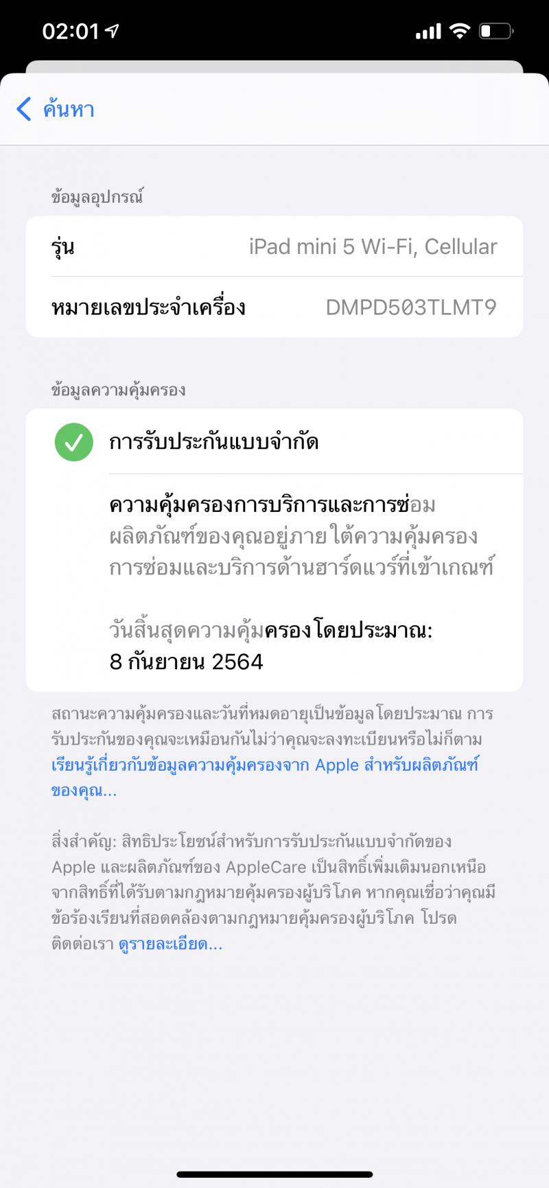 iPad Mini 5 64GB Wifi Cellular สภาพเหมือนใหม่ ประกันศุนย์ไทย ปลายปี 12900 บาท