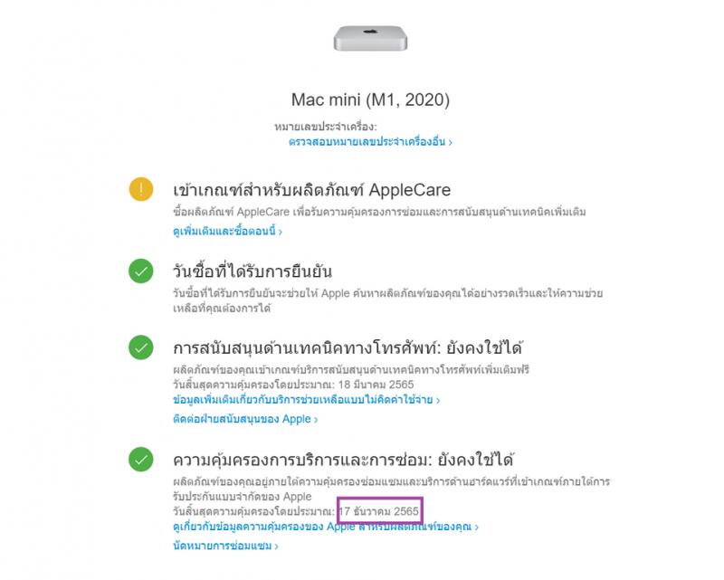– Warranty : ประกันศูนย์ Apple ถึงวันที่ 17-12-2022