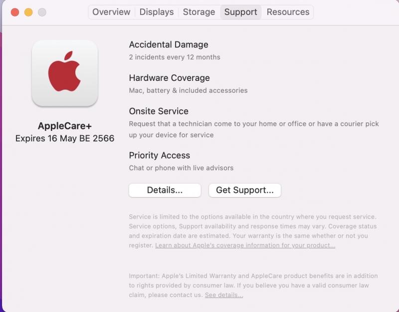 – Warranty : ประกันศูนย์ Apple Care+ 16-05-2022