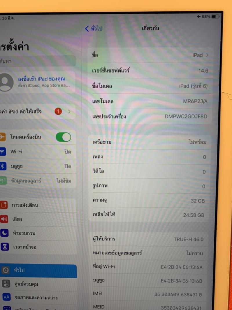 iPad Gen6 cellular 32Gใส่ซิมได้ ใช้ pencil ได้ ใช้งานปกติทุกอย่าง งดต่อราคา ครับ