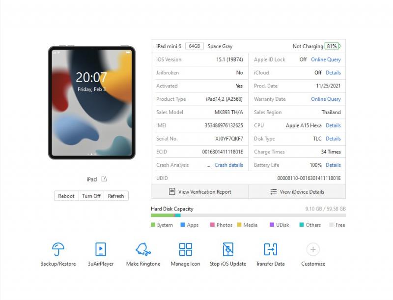 iPadMini6 64gb Cellular แบต100% ประกันเหลือเดือน9