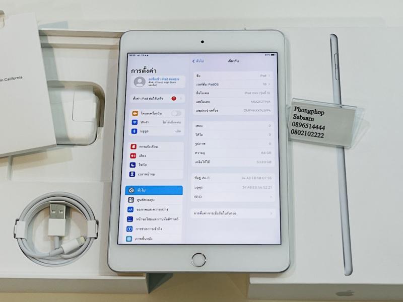 - iPad Mini 5 (64 GB Wifi ) สี Silver เครื่องประเทศ ไทย Model Th