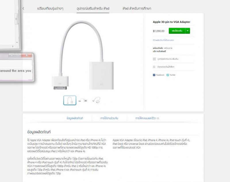 อุปกรณ์ : Apple 30 pin to VGA adapter for Apple iPad 2 3, iPhone 4 4S, iPod Touch