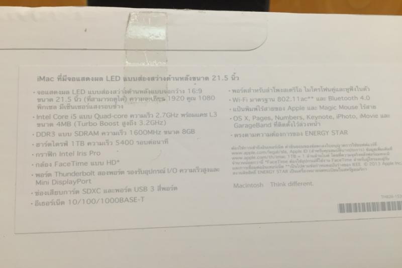 ขาย imac 21" Slim 2.7 i5 R8G อายุ23วันรองท๊อปประกันเต็ม36900