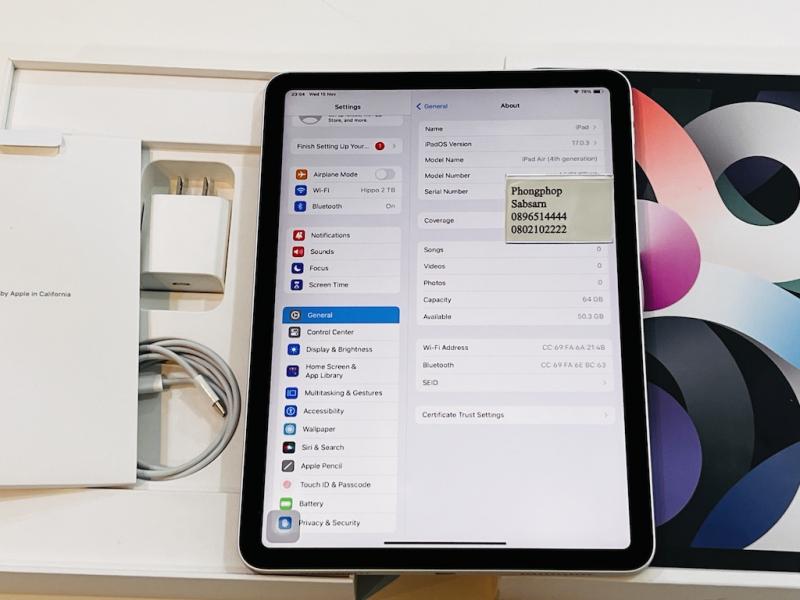 iPad Air 4 Wifi 64GB สี Silver เครื่องสภาพใหม่ ประกันศูนย์พึ่งหมด อุปกรณ์ ครบกล่อง