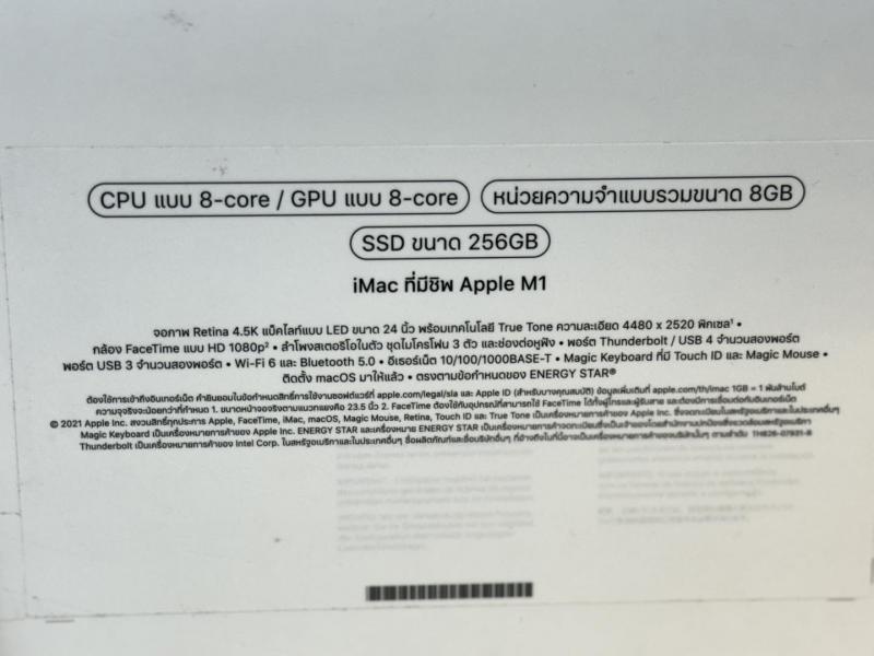 iMac Retina 4.5K 24 นิ้ว ปี 2021 ชิป M1 (8C CPU/8C GPU) SSD 256 GB Ram 8 ศูนย์ไทย ประกันหมด สภาพเหมือนใหม่เอี่ยม 99.99 % ดุจมือ 1 ทุกประการ ครบยกกล่อง การใช้งานปกติ