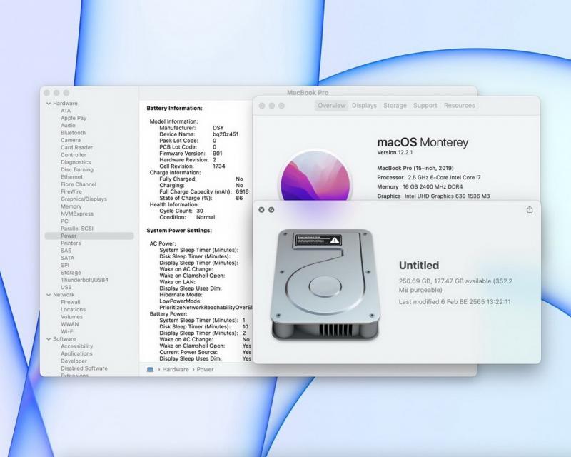 – กราฟิกIntel UHD Graphics 630 (1560 MB) การ์ดจอแยก Radeon Pro 555X (4GB)