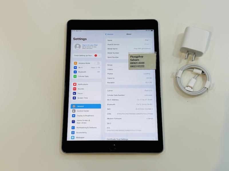iPad 10.2 Gen 9th 64GB Wifi Cellular สภาพใหม่ศูนย์ ไทย 9900 บาท
