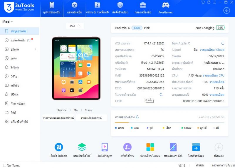 -สินค้า : iPadMini6 64gb Cellular Pink ModelTH/A