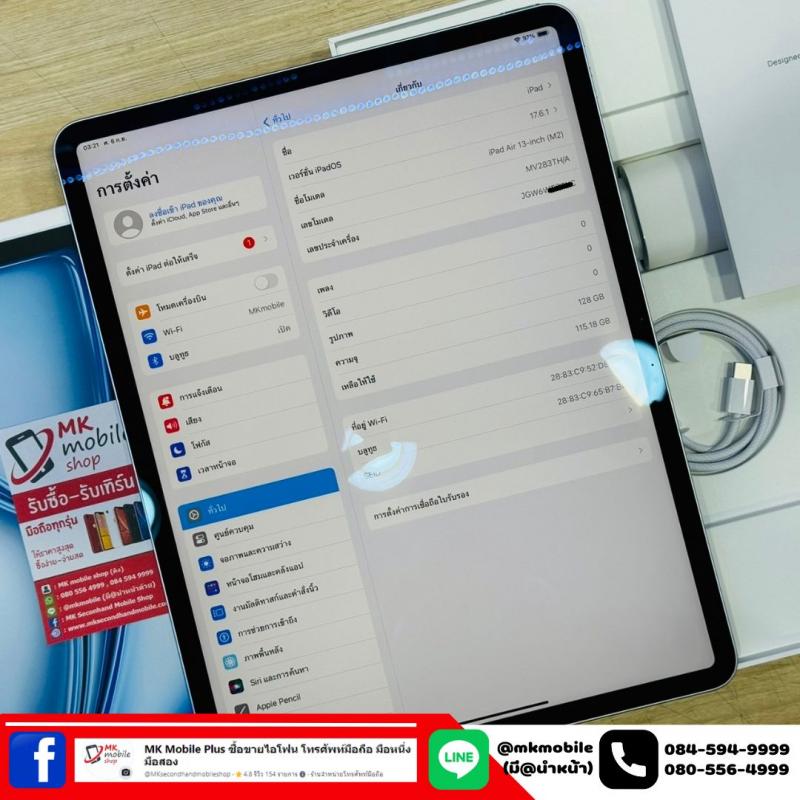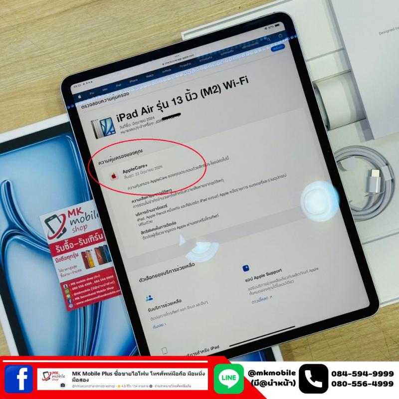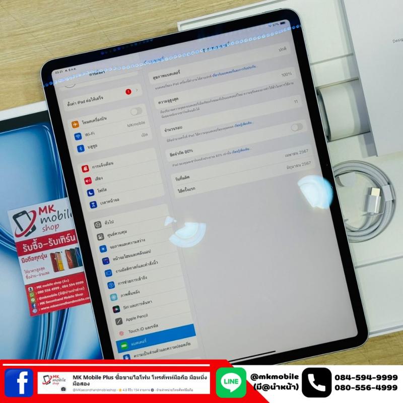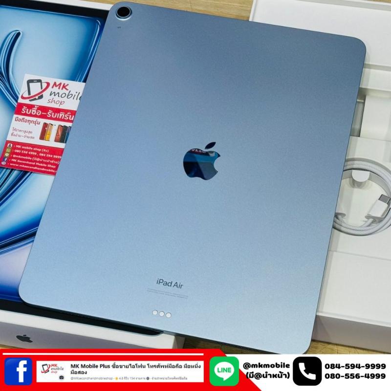 >>> Ipad Air 6 13 นิ้ว ชิพ M2 128GB Wifi อย่างเดียว Blue ศูนย์ไทย สภาพนางฟ้า ซื้อประกัน Care plus 22-06-2569 รอบชารจ 11 ครั้ง อุปกรณ์แท้ครบยกกล่อง เพียง 27990