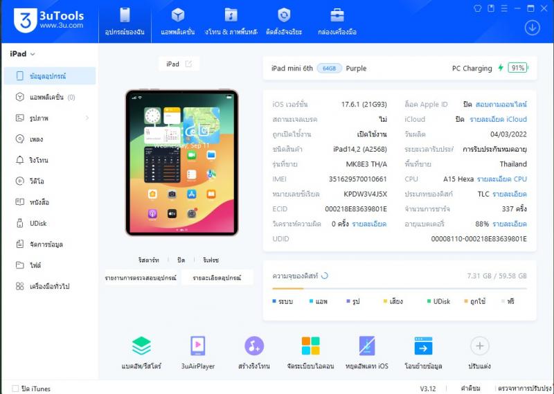-สินค้า : iPadMini6 64gb Cellular Purple ModelTH/A