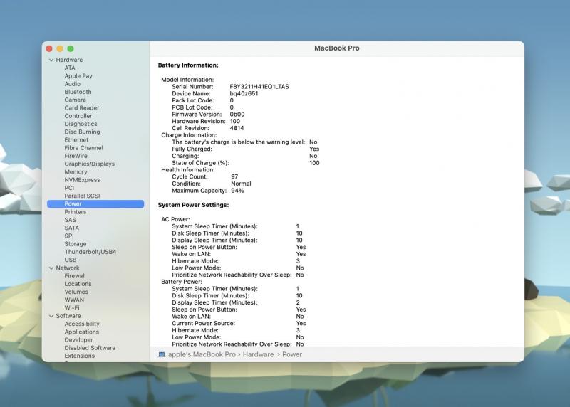 ▪️ Battery : Cycle Count 97/Normal,Maximum Capacity 94%