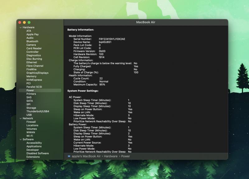 ▪️ Battery : Cycle Count 22/Normal,Maximum Capacity 95%