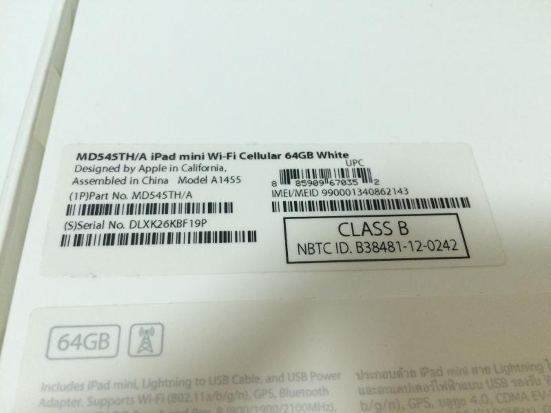 ขาย iPad Mini1 64g wifi cellular สีขาว อุปกรณ์ครบ พร้อมกล่อง