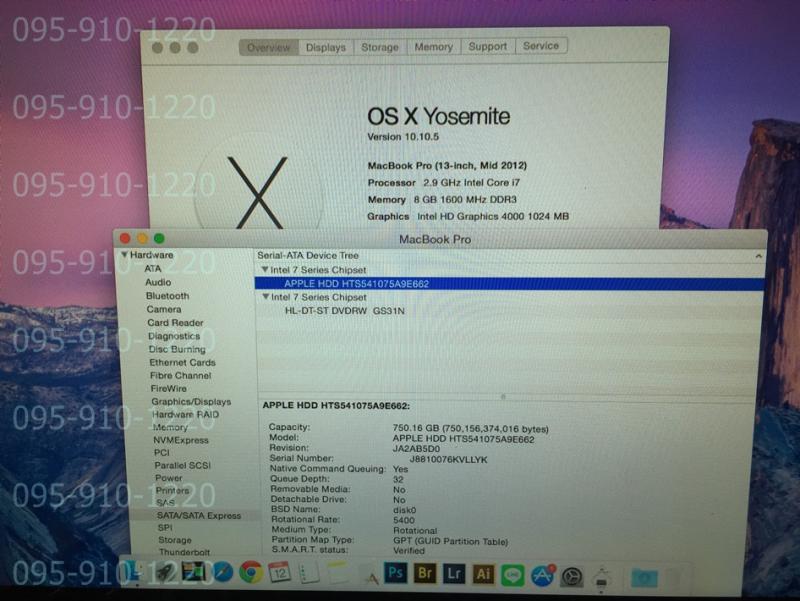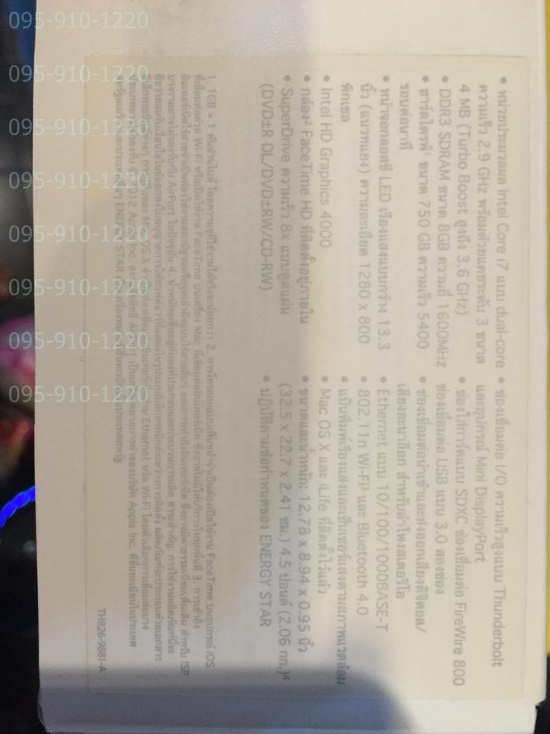 ขาย macbook pro 13" 2.9 i7 R8G HDD750 สวย ครบ ยกกล่อง 29900