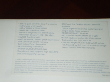 Macbook Pro 15.4 นิ้ว Core I7 2.0 GHz Ram 4 GB DDR3 HDD 500 HD 6490M อายุ 4 วัน ใหม่ 100%