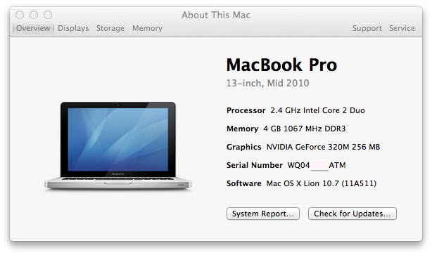 ขายแล้วครับ MacBook Pro 13 C2D 2.4 Ram 4G HD 250 GF320 Key Thai ประกันถึง 15 พ.ย