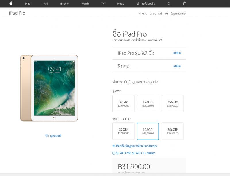 อุปกรณ์ : ไอแพดโปรครบกล่อง ใส่ซิมได้4G LTE ความจุ128 Gb ขนาดจอ 9.7นิ้ว สีทอง ของใหม่ยังไม่แกะกล่อง