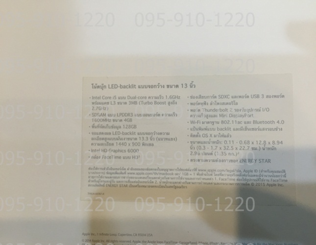 สเปคคร่าวๆนะครับ Macbook air 13" 2015 ตัวล่าสุด Core i5 1.6 Ram4GB SSD128GB อุปกรครบยกกล่อง เลขตรงกันทุกตัวครับ