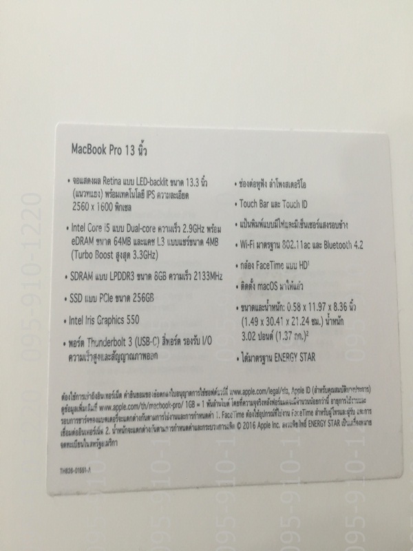 ขาย macbook pro 13" 2.9 tuch bar เทาดำ อายุ26วัน ของครบ57900