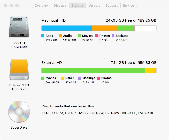 ความจุ Hard Drive 500 GB ความเร็วในการหมุนของรอบ HDD 7200 rpm (รอบความเร็วสูงกว่า HDD ของ iMac รุ่นใหม่ๆ ที่บางลง สามารถเขียน/อ่านข้อมูลได้ไวกว่า)