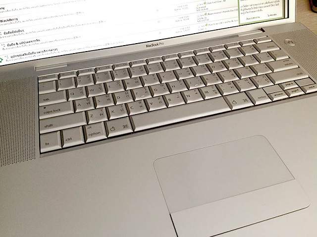 Macbook Pro 17\" Core2duo 2.4 อัพแรมเป็น 4g แรงๆ HDD 160gb สภาพดีเครื่องศูนย์ไทย คีย์บอร์ดไทย จอไฮเดฟแบบด้านสำหรับงานกราฟฟิคโดยเฉพาะ รุ่นนี้เสียงดีมาก ฟังเพลงเพราะเลย ทำงานได้สบายๆ แบตเตอร์รี่เพิ่งเปลี่ยนใหม่ 8 cycle ใช้งานนอกสถานที่สบายๆ
