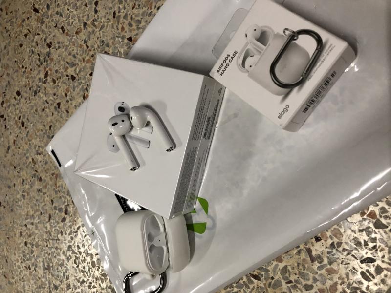 ขาย AirPods พร้อมซิลิโคนเคสสีขาวห้อยเข็มขัด สภาพ 99.99% แทบไม่ได้ใช้เลย แค่เปิดลองฟังเสียงเท่านั้น ซื้อจาก iStudio เดอะมอลล์บางแค เมื่อวันที่ 8 เมษายน 2561 มีใบเสร็จยืนยันพร้อมกล่องและอุปกรณ์ครบ