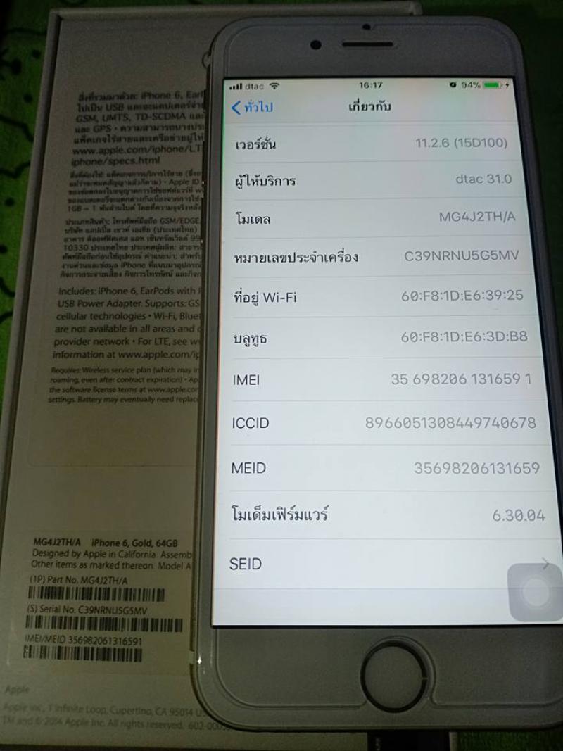 ขาย Iphone 6 สีทอง 64 g อดีตเครื่องศูนย์ อุปกรณ์ครบยกกล่อง