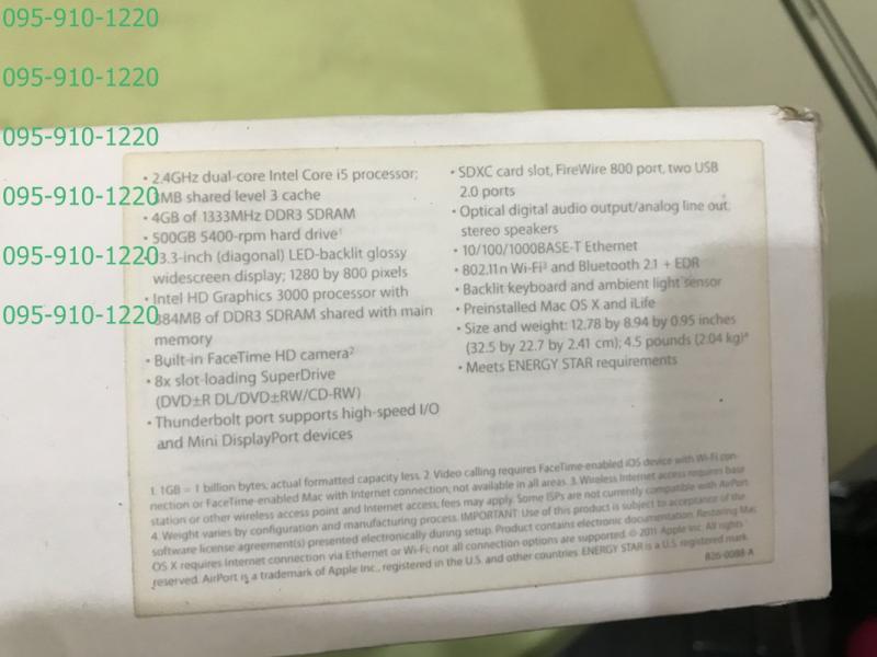 สเปคคร่าวๆนะครับ macbook pro 13" 2011 2.3 Core i5 ram4GB HDD320GB อุปกรครบยกกล่อง สามารถนำไปเพิ้มสเปคเองได้