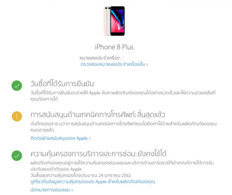 อุปกรณ์ : iPhone 8 Plus 256GB สีทอง เครื่องศูนย์ไทย TH