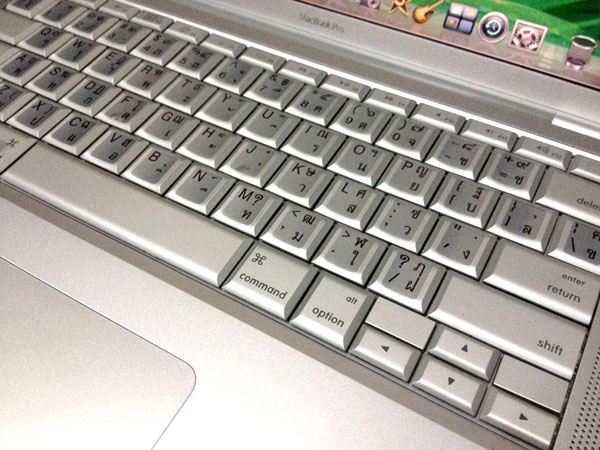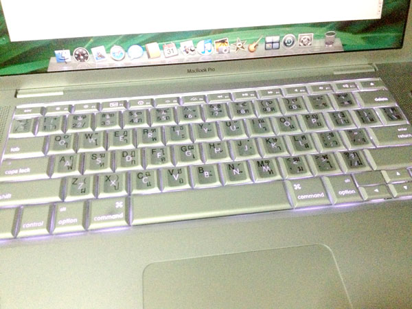 เป็นเครื่องของเราเองคะ ซื้อมาตอนปี 2008 คะ เป็นเครื่องอลูมิเนียม คีย์บอร์ด ไม่มีภาษาไทย แต่เคลือบติดสติกเกอร์สีบรอน yamato อย่างดี เข้ากันสวยงามไม่หลุดลอกคะ เป็นคนรักษาของมากจริงๆคะ เก็บของทุกอย่างดี ดูแลรักษาดี ตัวจริงสวย สะอาด ขาวจั๊วะ Multitouch และ ที่วางมือเนียน ไม่มีรอยเลย สวยใหม่ แล้วจะไม่ผิดหวังคะ
